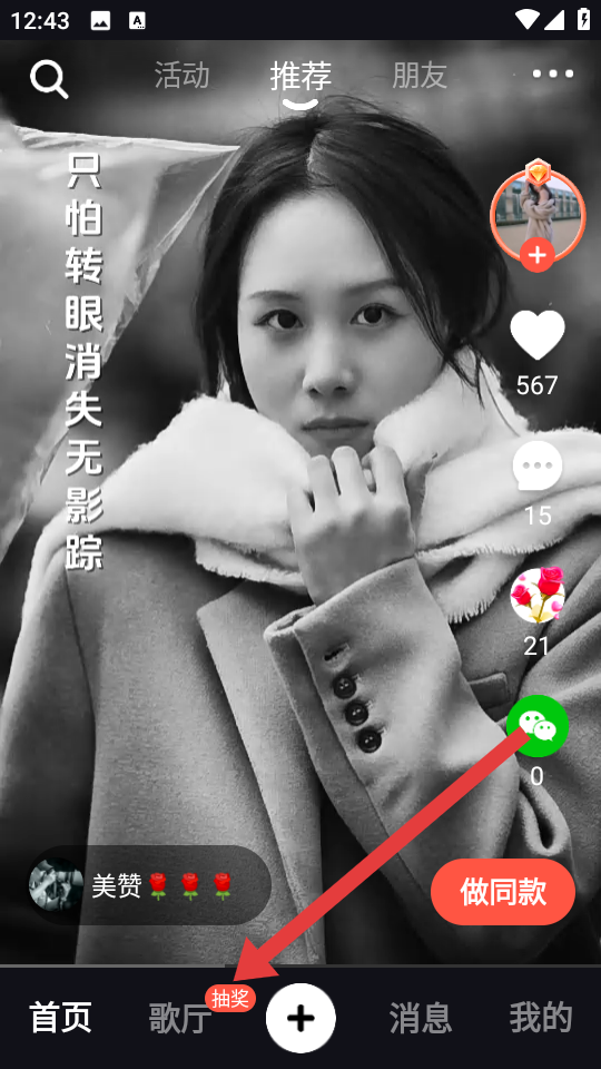 1、在音画的主界面,点击底部导航栏歌厅按钮,进入歌厅的页面。