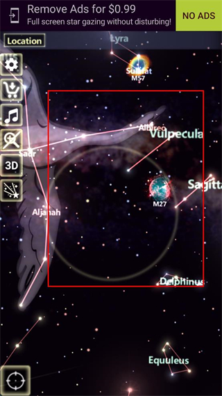 3、继续切换界面,查看包含Vulpecula等星座的区域,同时留意显示的星云标识。