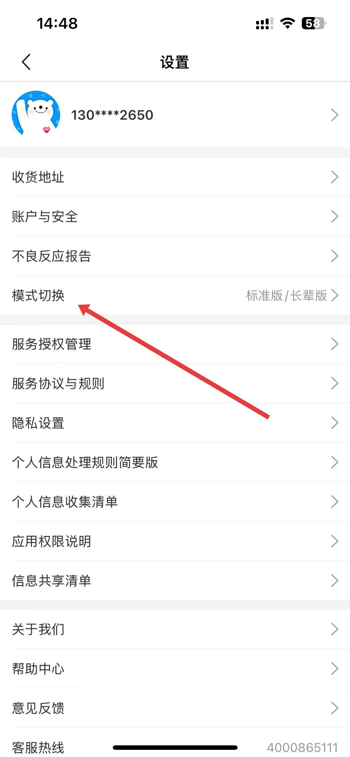 4、在模式选择页面,点击长辈模式选项,即可成功切换。