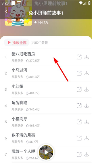 2、在音频内容页面,选择目标故事,进入该故事的音频列表页面。