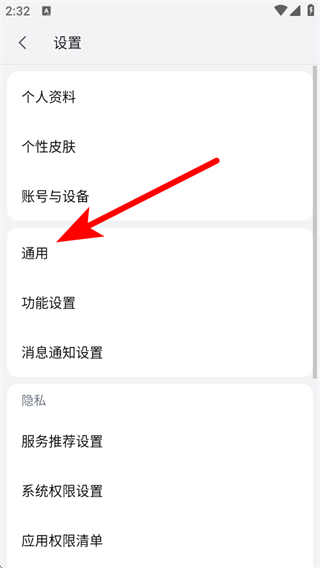2、进入设置页面后,选择通用选项,进入通用设置对应的界面。