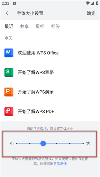 4、拖动页面中的滑块调整字体大小,完成后点击确定保存设置。