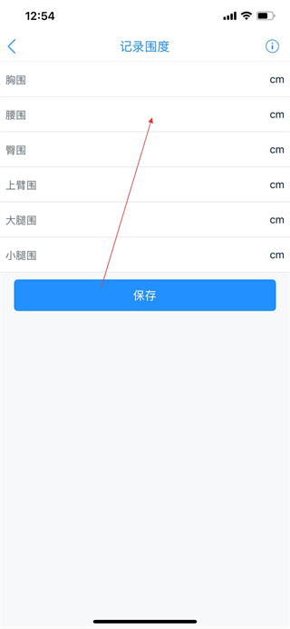 4、在体围记录页面点击添加体围按钮,进入记录围度页面。
