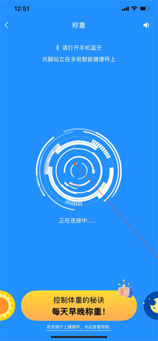 3、打开蓝牙,光脚站立在多锐智能健康秤上,等待设备完成连接。