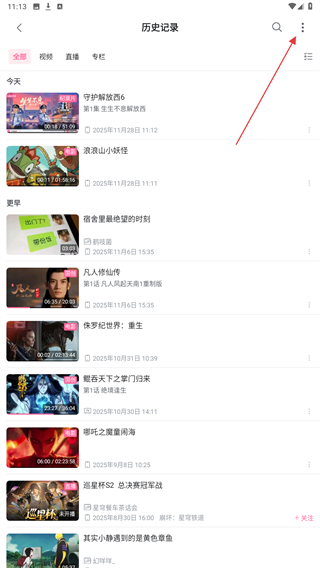 3、进入历史记录的页面内,点击右上角的功能图标。