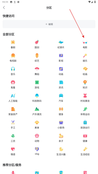 2、进入分区的界面内,在全部分区下找到并点击电影的图标。