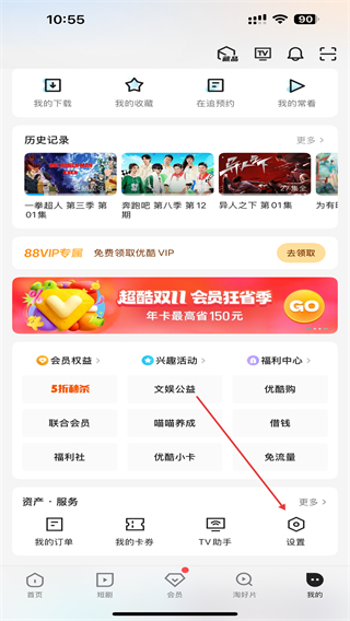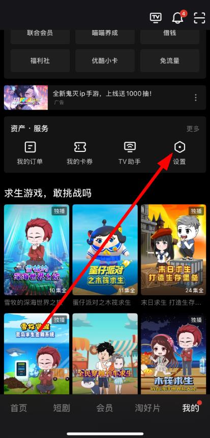 2、在个人页面下滑,找到资产·服务板块,点击其中的设置选项。