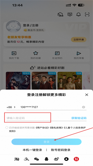 5、将收到的验证码输入进去后,再点击登录的按钮即可。