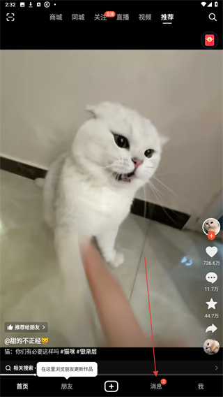 1、打开火山小视频,进入时点击下方消息的功能按钮。