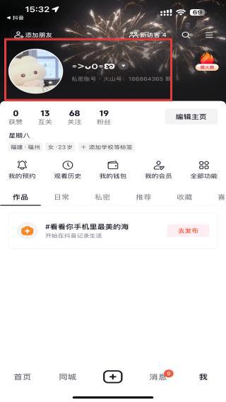 1、打开抖音APP,点击底部导航栏最右侧的我,进入个人中心页面。