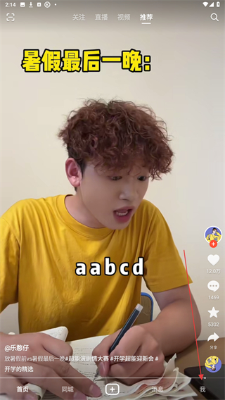1、打开火山小视频的APP,进入时点击右下我。