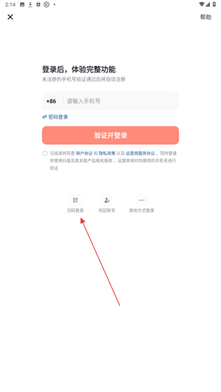 2、进入登录的界面内,用户需点击下方扫码登录的功能按钮。