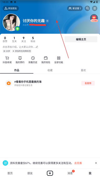3、登录成功后,会自动跳转到个人主页,可看到账号信息、关注数、粉丝数等。