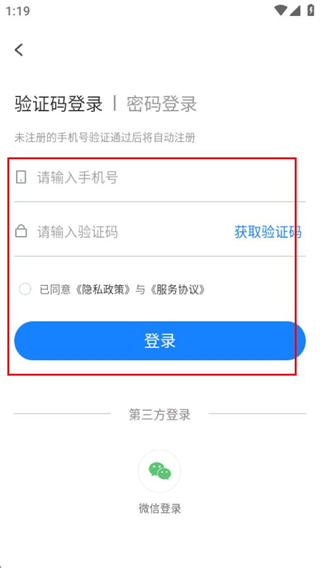 3、在登录页面,填写信息,勾选协议后点击登录按钮完成登录。