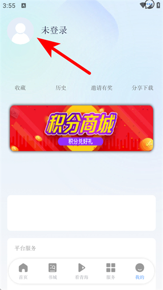 2、在个人页面中,点击未登录的头像区域,进入登录注册界面。