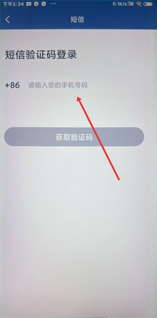 3、在登录页面,输入已注册的手机号码,点击获取验证码填写,即可完成短信登录操作。