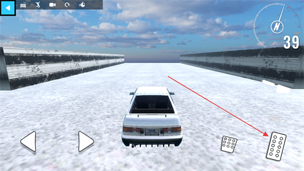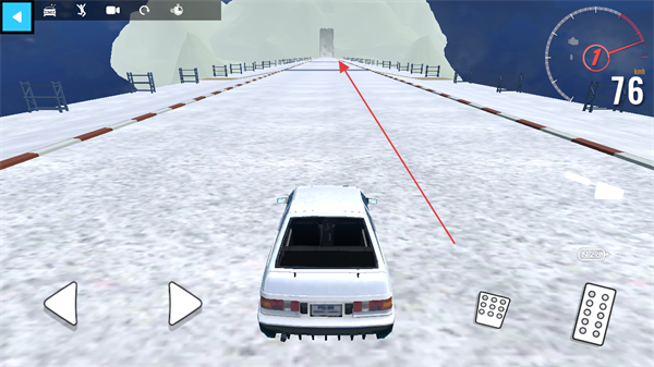 1、操控车辆在雪地赛道前进,通过左右按键调整方向,保持车辆行驶轨迹。