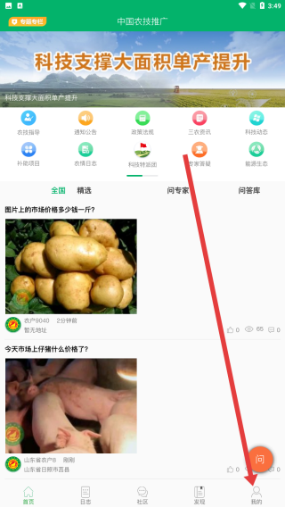 1、进入中国农技推广主界面后,点击底部导航栏最右侧的我的选项。