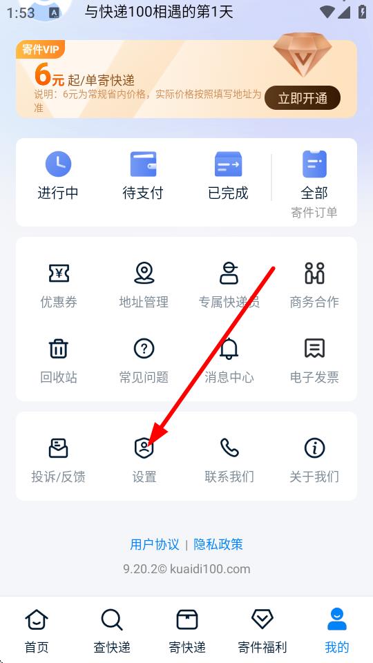 1、在快递100app首页点击我的选项,进入个人页面。