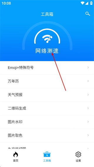 2、在工具箱界面,点击“网络测速”选项,进入网络测速页面。