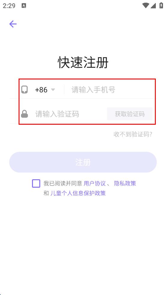 4、勾选“我已阅读并同意用户协议、隐私政策和儿童个人信息保护政策”,然后点击“注册”按钮,完成快速注册操作。
