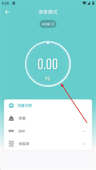 3、注册成功后可进入APP,查看体重、BMI、体脂率等测量详情。