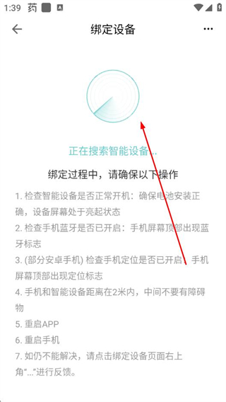 3、确保体重秤开机、手机蓝牙开启,等待App搜索并连接体重秤,完成绑定。