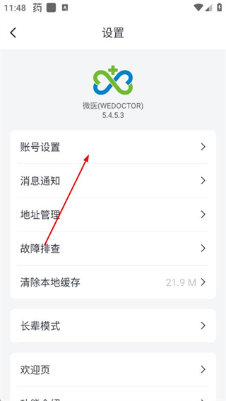 3、在设置页面点击账号设置选项,进入账号设置页面。