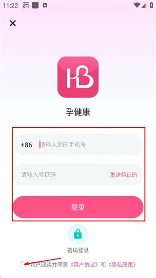 3、填写手机号、获取并输入验证码,勾选同意协议后点击登录,完成注册。