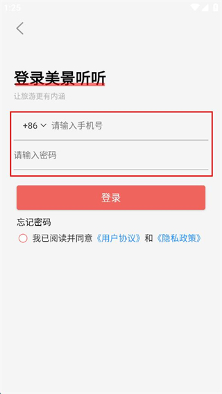 3、在登录界面,依次填写对应的手机号码和设置好的登录密码,勾选相关协议选项。