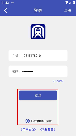 4、勾选“已经阅读并同意”相关协议选项,确认信息无误后,点击“登录”按钮完成操作。