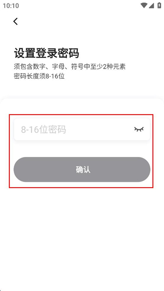4、进入设置登录密码界面,按照要求设置包含至少两种元素、长度8-16位的密码,再点击“确认”按钮。
