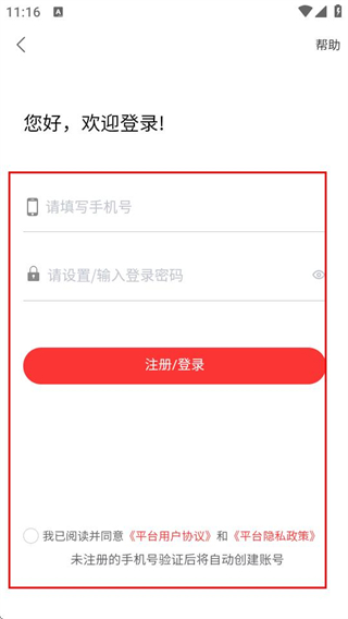 3、在登录页面,填写信息,勾选协议后点击注册登录完成登录。