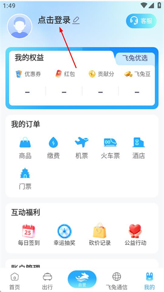 1、在飞兔商联的首页,点击底部的我的选项,进入个人中心页面。