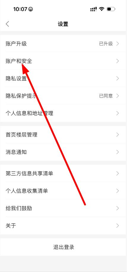 3、在设置页面中,点击账户和安全选项,进入账户与安全界面。