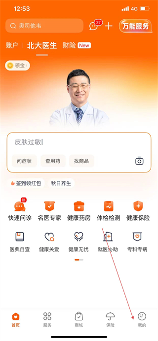 1、打开平安好医生APP,点击导航栏我的,进入个人中心页面。