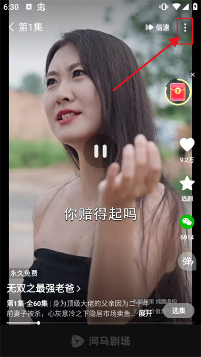 3、找到播放页面右上角三个点按钮,点击会出现弹窗,如下图所示;