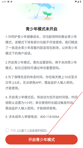 河马剧场怎么开启青少年模式