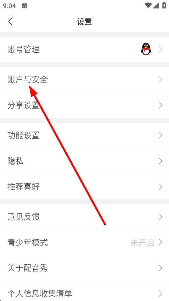 3、在设置页面,点击账户与安全选项,进入账号与安全界面。