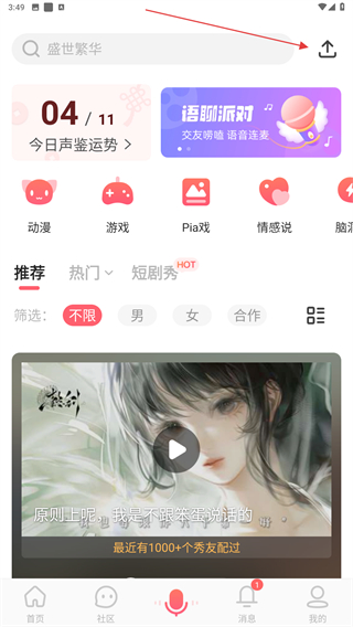 【新增】语聊全新戏厅功能开始公测活动,体验沉浸式剧本Pia戏,每天限时开放