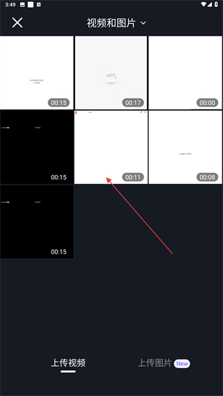 4、进入视频和图片的页面内,选择后点击素材封面即可。