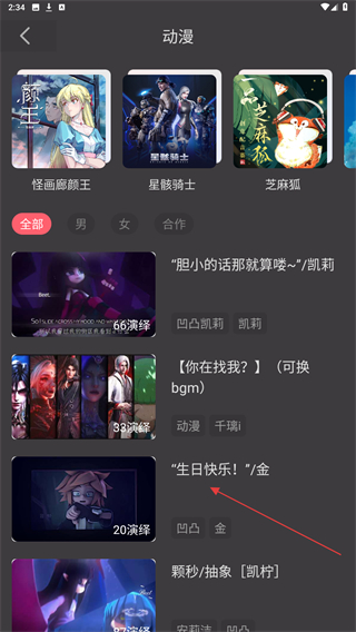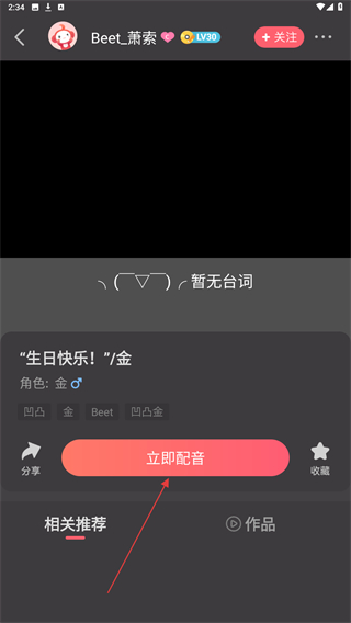 3、在动漫配音的页面内,选择并点击要配的音频。