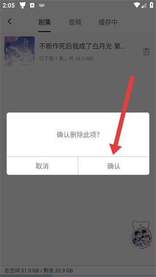3、弹出确认删除此项的窗口后,需要点击确认,即可删除该下载的音频。