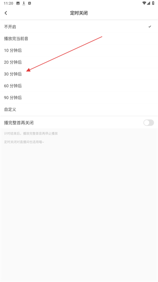 3、进入定时关闭的页面内,选择并点击定时时间。