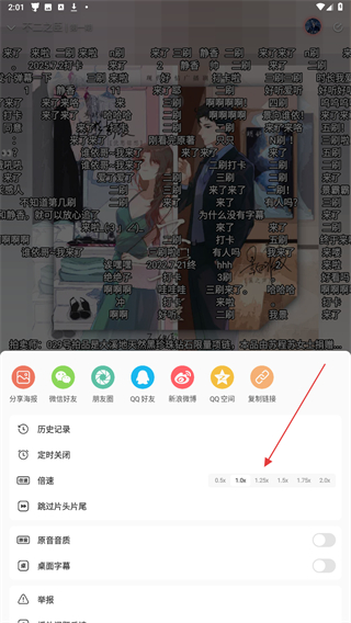 3、在下方弹出的页面内,找到倍速并选择倍速速度即可。