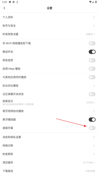 3、进入设置的页面内,找到桌面字幕并开启右侧的按钮。