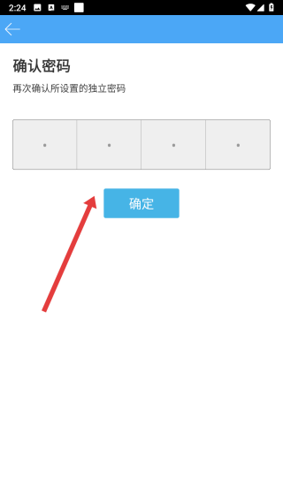 4、在确认密码页面中,再次输入设置的密码后点击确定,完成开启青少年模式。