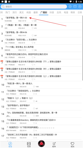 2、在广播剧的页面内,选择并点击要听的广播剧名称。
