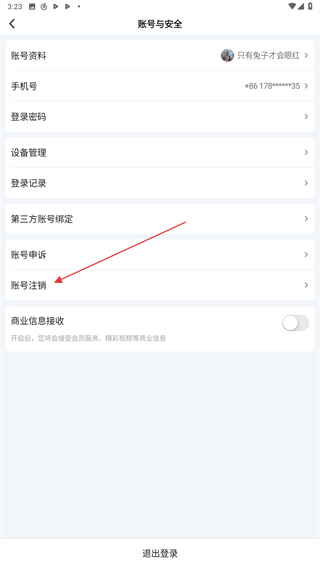 4、在账号与安全界面下,点击账号注销的按钮即可。