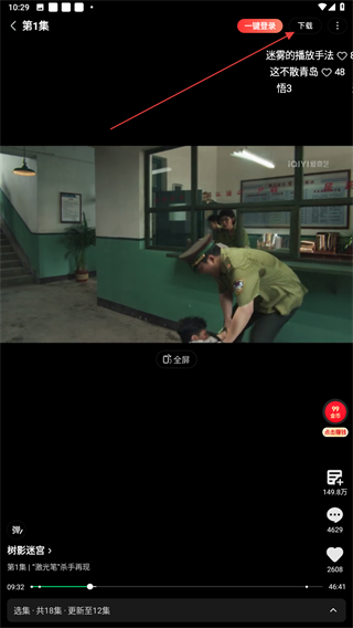 3、进入播放的页面内,点击右上下载的功能按钮。